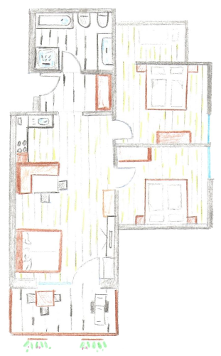 - Cucina completamente arredata: 4 piastre cottura in vetroceramica, frigo e freezer, lavastoviglie, macchina per il caffè, bollitore d’acqua, tostapane, forno, microonde, pentole e stoviglie a sufficienza, utensili per cucina, presine e canovacci.